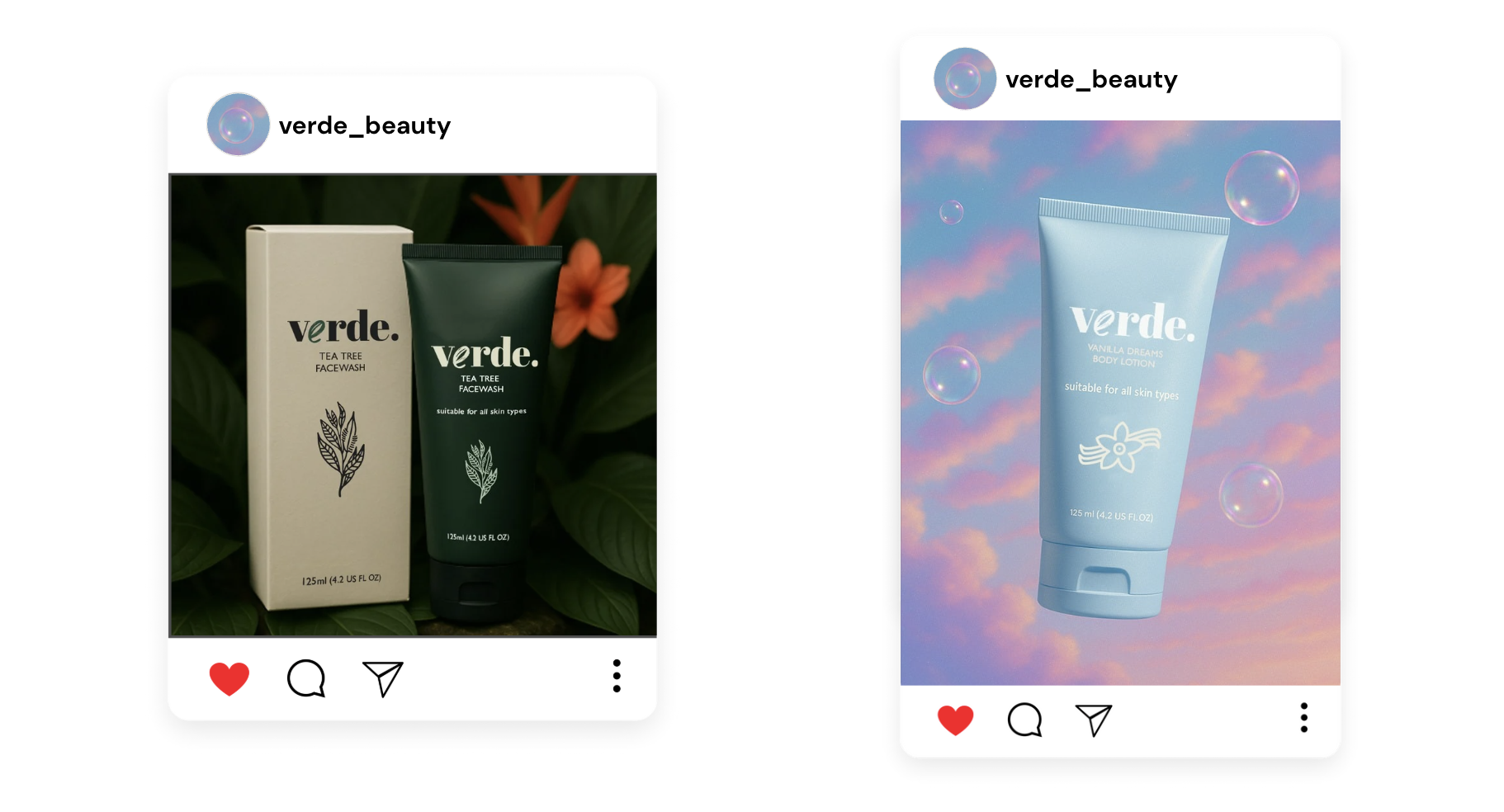 Campaign for Verde’s nature product line, specifically enhanced by combining art direction with artificial intelligence design software.